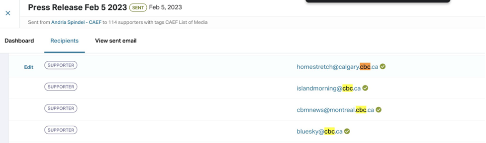 In terms of actual documented slur campaigns, though, the CBC was informed of a widespread harassment campaign targeting Jewish doctors. See below for the screenshot, providing evidence of the press release sent days before their article was published.