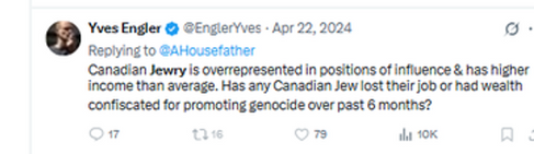 Yves ENGLER has a long and notorious record of making statements hostile to Jews in Canada. The fact that he is now officially a convicted criminal is, in our estimation, good news.